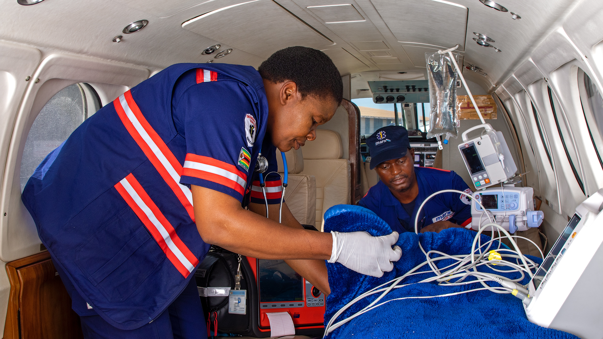 The flight team comprises a doctor, intensive care nurse & two pilots. MARS can transfer patients from the scene of accident to the nearest appropriate medical facility in and out of Zimbabwe. All medical flight staff have attended international aviation medicine and flight medical attendant courses. On board is equipment of intensive care unit standard including comprehensive drug range. To date Air Ambulance has performed over 2750 successful evacuations.